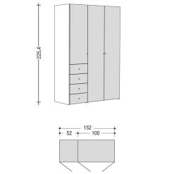 Paidi Kira Kleiderschrank 2T, 2S Eiche-Nautik Fronten & Korpus Kreideweiß – Versandkostenfrei