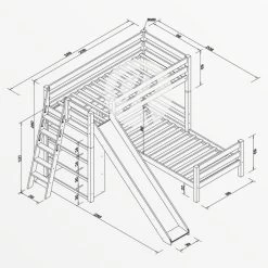 Relita SKY Etagenbett Buche Massiv Weiß Inkl. Regal & Rutsche – Zu 2 Einzelbetten Umbaubar