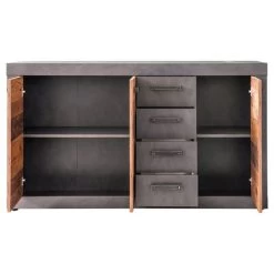Trendteam Indy Kommode 3 Schubkästen, 4 Türen Old Wood / Graphit Grau