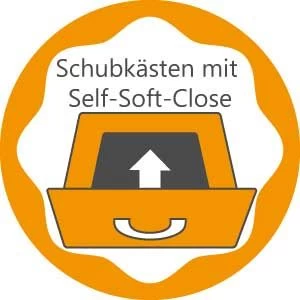 geliefert. Die drei groĂen SchubkĂ€sten links sind mit Self-Soft-Close