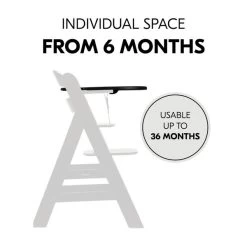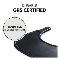 Das Essbrett wird aus recyceltem Material gefertigt, das nach dem Global Recycled Standard, kurz GRS, zertifiziert ist. Das steht für klare soziale, ökologische und chemische Produktionsvorschriften. Das Tablett kannst du ganz einfach über einen Klick an den Hochstuhl montieren. Dieser eigene Tisch gibt deinem Kind von 6 bis 36 Monaten mehr individuellen Freiraum. Die glatte Oberfläche kannst du schnell mit einem Tuch und herkömmlichen Reinigungsmitteln sauber wischen.