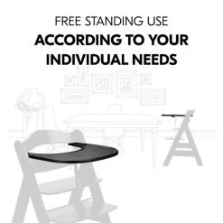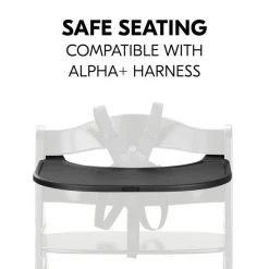 Im Kinderstuhl mit Aufsteck-Tablett sitzt dein Kind sicher und stabil, da du den Tisch mit Schrittgurt und 5-Punkt-Gurt nutzen kannst. Das großzügig geschnittene Tablett bietet viel Platz für Teller, Becher und Tassen zum Essen sowie für kleine Spielsachen. In Wohnzimmer, Kinderzimmer, Küche oder Bad – mit dem Alpha+ sitzt dein Kind im Holzhochstuhl immer auf Augenhöhe bei dir. Dein Kind kann den Stuhl nach euren individuellen Bedürfnissen nutzen. Kombinierst du das Tablett mit Sitzverkleinerer und Sitzkissen, ermöglichst du deinem Kind zusätzlichen Komfort.