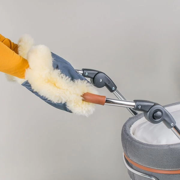 Den Hesba Handmuff Premium einfach am Schiebegriff fixieren und das echte Premiumfell sorgt für mollig warme Hände.