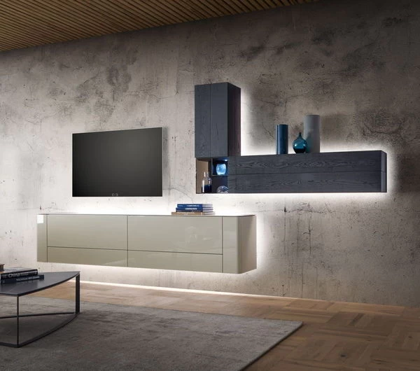 Für diese hülsta Gentis Wohnwand 5 ist die Installation einer indirekten Beleuchtung möglich (siehe Foto). Diese besteht aus einem Funktionsrahmen (Lack weiß) für jedes Element und der entsprechenden LED-Beleuchtung für die Funktionsrahmen. Gesteuert wird die Beleuchtung über eine Funk-Fernbedienung mit Farbtemperaturwechsel (kaltweiß – 6500K bis warmweiß – 2700K). Diese Fernbedienung ist bereits in der Grundausstattung dieser Wohnwand enthalten und kann auch für die zusätzliche rückwärtige Beleuchtung genutzt werden.