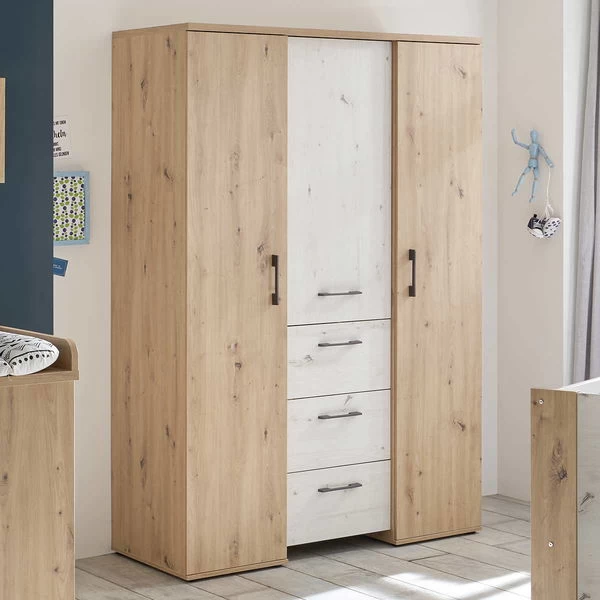 Mäusbacher Micha Kleiderschrank 3-türig in asteiche/artisan weiß