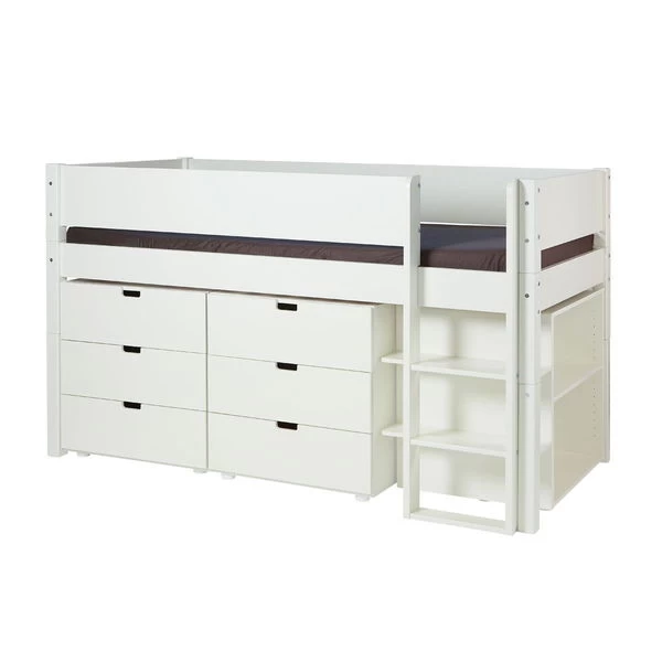 Die Betten werden aus einer Kombination von MDF und massivem, astfreiem Holz hergestellt und mit Farben auf Wasserbasis ohne gefährliche Chemikalien lackiert. Dank der 5-jährigen Nachkaufgarantie können Sie das Bett den Bedürfnissen Ihres Kindes in der Kindheit und im Teenageralter anpassen.
