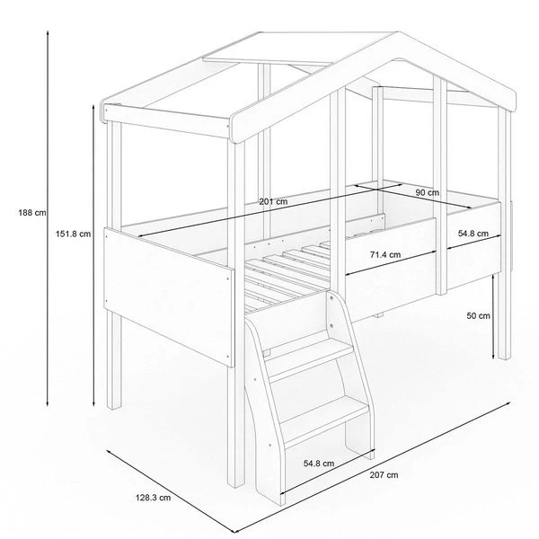Sie sind auf der Suche nach einem wunderbaren Hausbett? Das Nature Kid Hausbett Moni erfüllt all Ihre Vorstellungen und wird zum unverzichtbaren Highlight im Kinderzimmer Ihres Kindes. Über die leicht schräge Leiter gelangt man mühelos ins Bett und unter dem Dach gibt es viel Platz zum Spielen. An der Vorderseite ist ein Whiteboard als Rausfallschutz während des Schlafens angebracht.