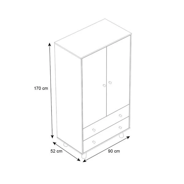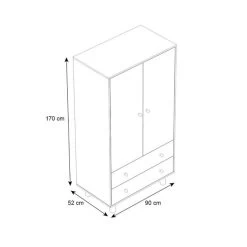 - Stellmaß: B 90 / H 170 / T 52 cm