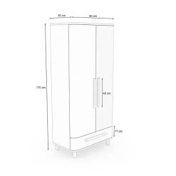 Modernes Design und viel Platz im Nature Kid Milan Kleiderschrank kombiniert. Die clevere Aufteilung hinter den Türen bietet viele Möglichkeiten um Kleider, Hemden, Hosen und vieles mehr. Mit der Schublade haben Sie zusätzlichen Stauraum.