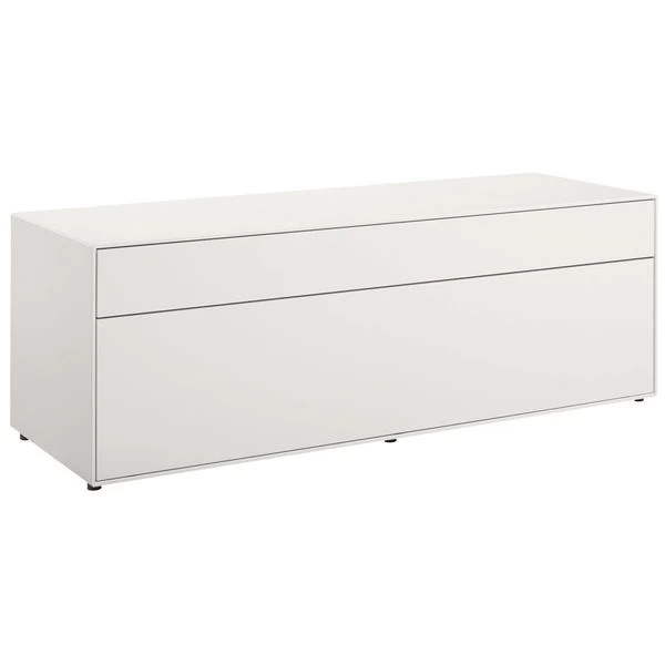 Das Lowboard verfügt oben über 1 Schublade und unten über 1 Klappe hinter der sich ein geräumiges Fach befindet.