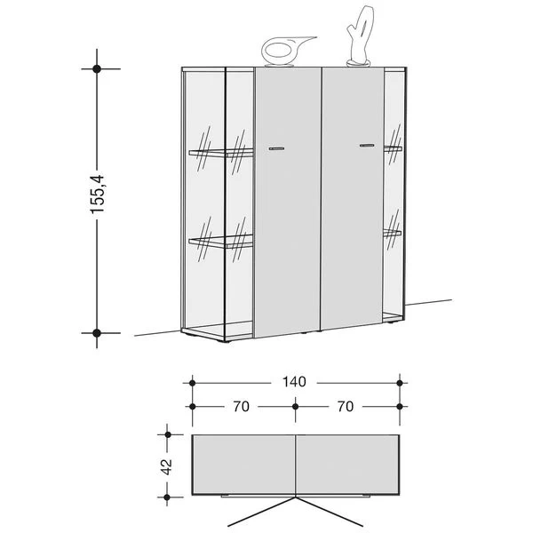 Gesamt: 155,4 x 140 x 42 cm (H x B x T)