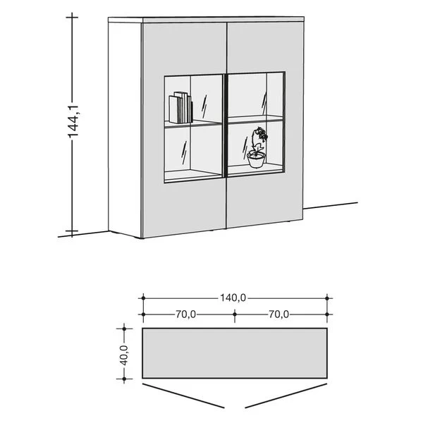 Gesamtmaß: 145,8 x 140,0 x 40,0 cm (H x B x T)
