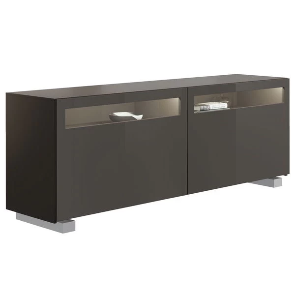 Der Korpus bei diesem Sideboard ist in Lack-grau gehalten. Die Front ist in Lack-Hochglanz-grau.