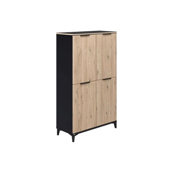 Der naturschwarze Korpus des Paidi Tomke Regal und die Einlegeböden und Türfronten in Eiche-Bordeaux bilden einen tollen Kontrast. Die zweifarbige Deckplatte und die Füße und Griffe aus gebürstetem Metall unterstreichen den industriellen Look. Dieses Regal bietet Ihnen ausreichend Stauraummöglichkeiten – im Kinder- und später auch im Jugendzimmer.