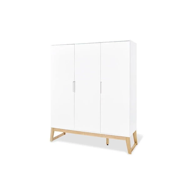 Mit zeitlosen und modernem Design lässt der Pinolino Bridge Kleiderschrank jeden Raum erstrahlen. Weiße Fronten und eingefräste, abgerundete Griffmulden sorgen für den letzten Schliff und hinter den 3 Türen ist jede Menge Platz. Durch die hochwertigen Sockel aus massivem Eschenholz sind die Möbel besonders stabil und langlebig.