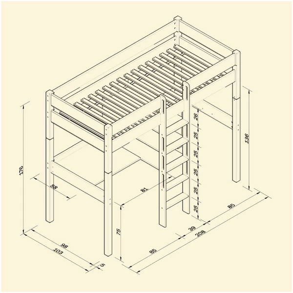 - Hochbett NOEL Buche massiv, klar lackiert