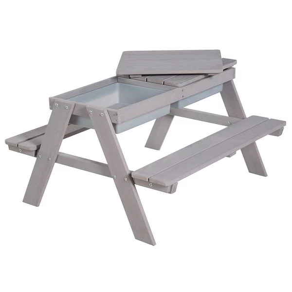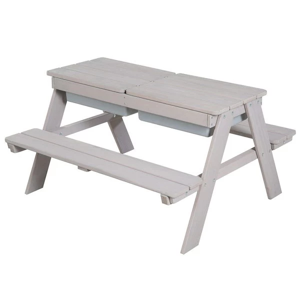 Die Roba Kindersitzgarnitur ist aus hochwertigem, robustem, lasiertem Massivholz gefertigt und dient im Garten als tolle Spielgelegenheit zum Picknicken, Basteln oder Sandburgen bauen. Dank der zwei Spielwannen kann die Kindersitzgarnitur auch super als Matschtisch genutzt werden. Die stabile Konstruktion ohne sichtbare Schrauben in den Oberplatten und die kindgerecht abgerundeten Ecken sorgen für optimale Sicherheit. Die Sitzbänke sind fest verschraubt und auf einer kindgerechten Sitzhöhe.