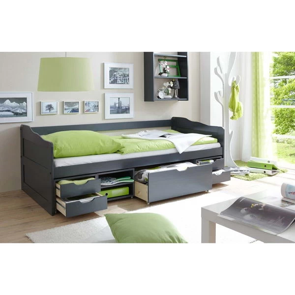 Ticaa Marlies Sofabett mit SchubkĂ€sten Kiefer grau – 90 x 200 cm