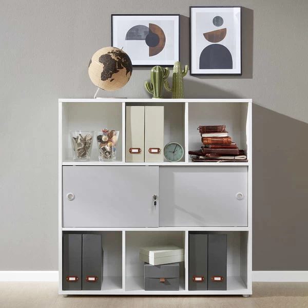 trendteam Basix Regal mit Schiebetüren weiß/grau
